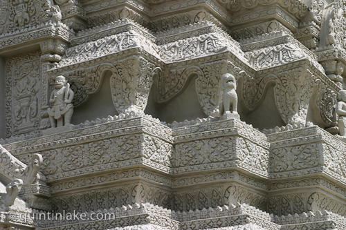 The central, 59 meter spire is topped with the white, four-faced head of Brahma of the Throne Hall, Royal Palace, Phnom Penh, Cambodia