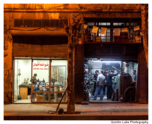 Traders after nightfall, Aleppo Streets, Syria
