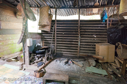 Internal common area of Iban Longhouse opens onto the 10 equally sized family units at left and external corridor at right