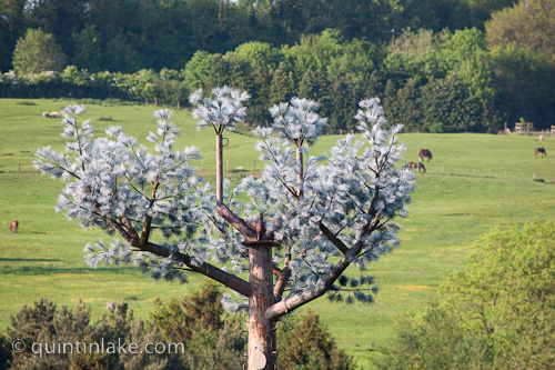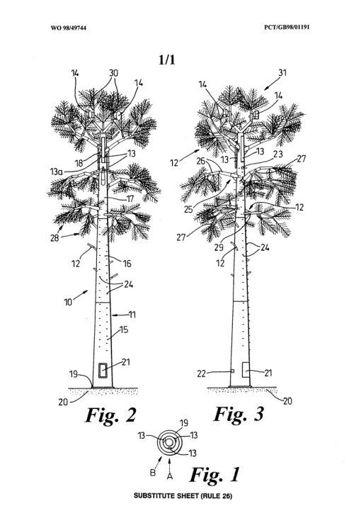 There are no actual transmitters attached to the “Trunk” in this example which makes it appear all the more surreal in contrast to the Cotswold landscape surrounding it. Having looked into it is seems to be the prototype for their patent for an “Antenna Tower in the form of a Tree