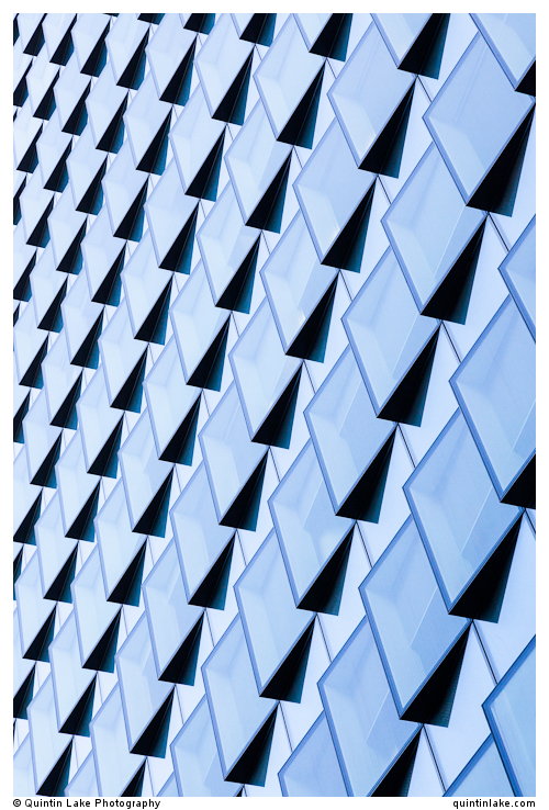 Ropemaker Building facade located in the City of London is made up of saw tooth angled windows in glass designed to reduce solar gain. I visited the building on a windy day and the passage of clouds reflected on the facade was mesmerising. Architect: Arup Associates. Built: 2012
