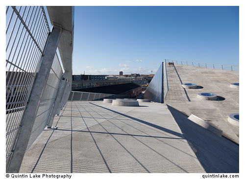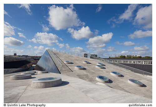 Assignment for Søren Jensen Engineers to document the construction in 2011 and completion in 2012 of Godsbanen / The Freight Yard, Aarhus, Denmark by 3XN Architects & Søren Jensen. The building is a centre for cultural production in Aarhus containing workshops, studios, theatre stages, auditoriums and a restaurant. The buildings used to host one of Denmark’s largest train freight yards and the new roof is open access allowing the visitors to walk over the building and get a panoramic view of the city including Your Rainbow Panorama and the Hothouse at the botanical gardensMore photos from this shoot