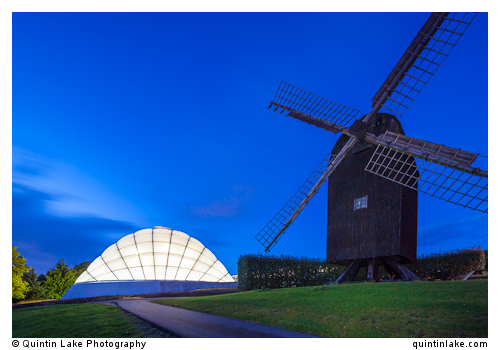 Hothouse at the Botanical Gardens with old Windmill, Aarhus, Denmark