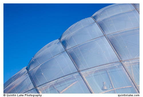 Some of the ETFE pillows are screen printed to reduce solar gain and appear silver