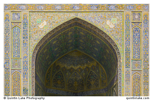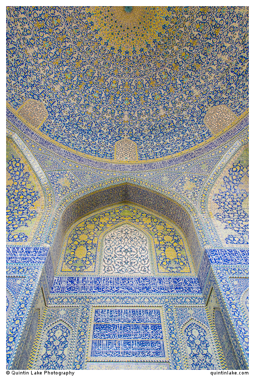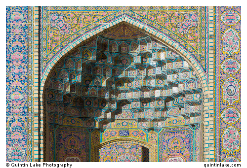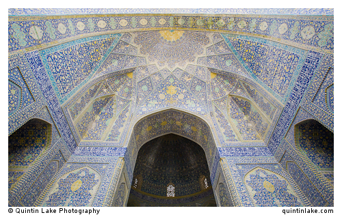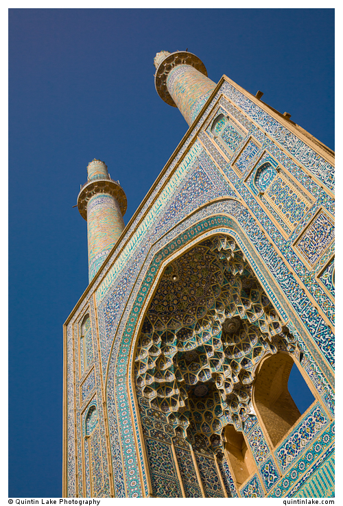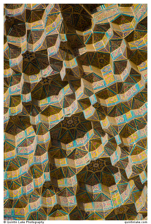 The Jameh Mosque is the congregational mosque (Jameh) of Isfahan city, Iran (Persian: مسجد جامع اصفهان – Masjid-e-Jāmeh). The mosque is the result of continual construction and reconstruction from around 771 to the end of the 20th century making it one of the oldest mosques still standing in Iran. I felt the Muqarnas (decorative corbels) are amongst the most beautiful in Islamic architecture for their sublime combination of subtle colour, complex geometry and heavily sculptural form.