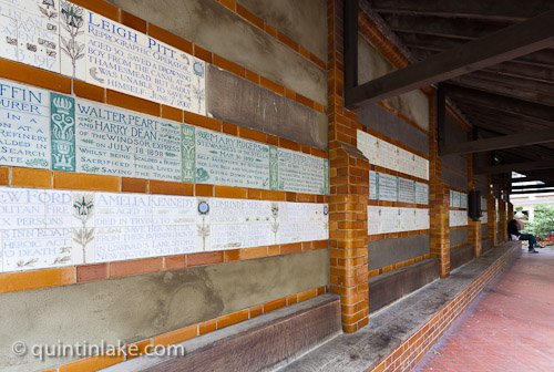 Postman's Park view of the loggia that makes up the Memorial to Heroic Self Sacrifice , City of London (Photo: Quintin Lake)