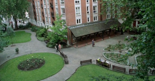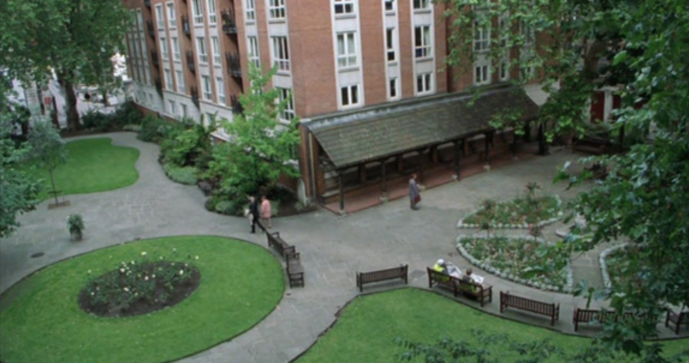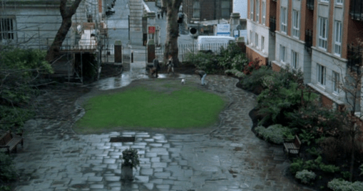 Alice Ayres (Natalie Portman) & Dan Woolf (Jude Law) enter Postman's park in the movie Closer