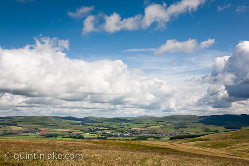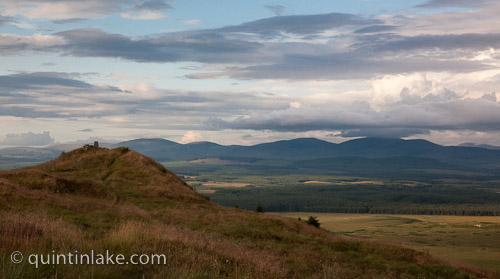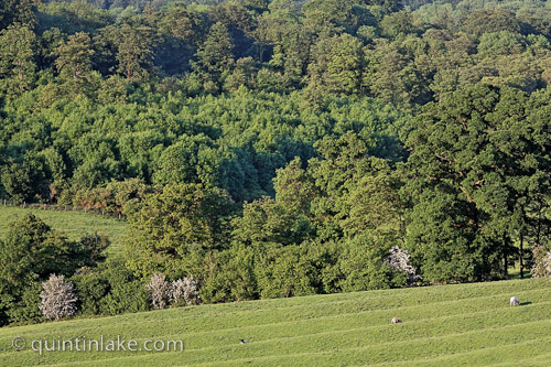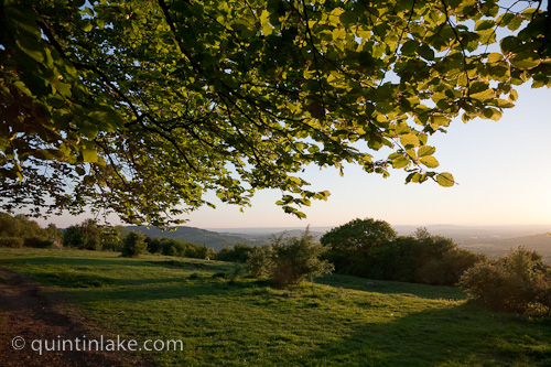 Cooper's Hill, Nut Hill & May Hill (L to R) seen from under a beech tree on Crickley Hill on the Cotswold Way