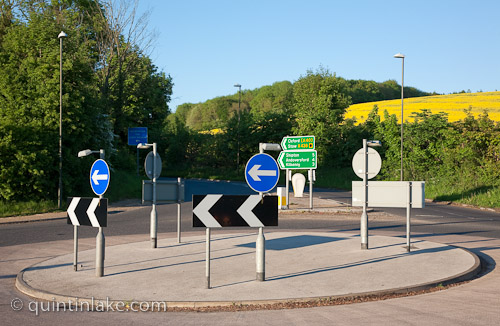 The A40 , A436 roundabout at Seven Springs, Gloucestershire
