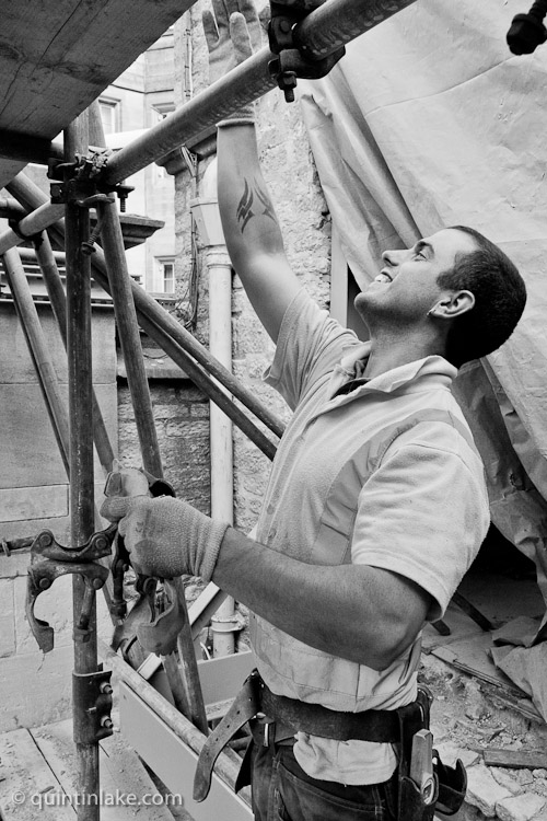 Scaffolder at Pembroke College. (photo © Quintin Lake)