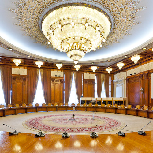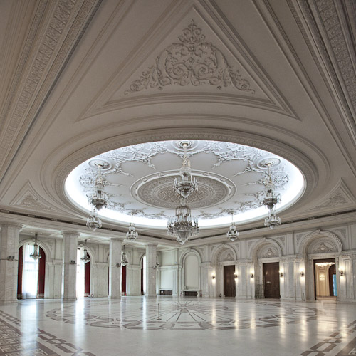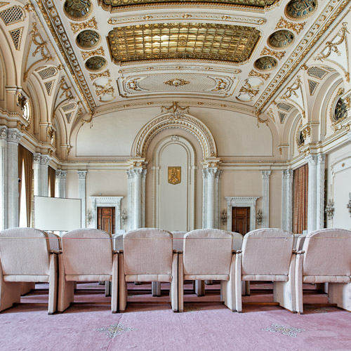 This room was intended as Nicolae Ceauşescu's office with direct access to the balcony, now Al. I. Cuza Hall. The blank space at the end of the room was originally intended for a painting of the modest fellow - perfectly positioned to be admired by his number one fan. Photo: Quintin Lake
