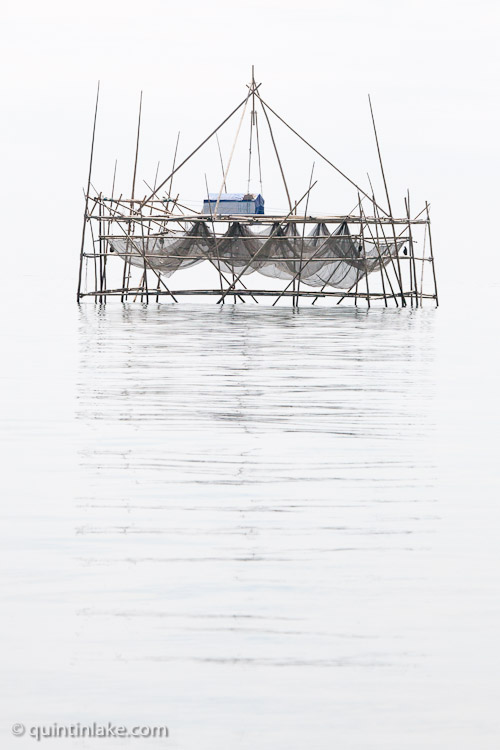 Bagang is a traditional fishing structure for catching anchovy made of bamboo in Sabah, Borneo. A large fishing net is placed on the sea bottom and light is used to attract the fishes gathering above the net. When this looks promising the net is lifted to collect all the fishes trapped inside. The structure is very beautiful, floating on the sea like a sketch of a house, which I imagine holds the dreams of those who build them.