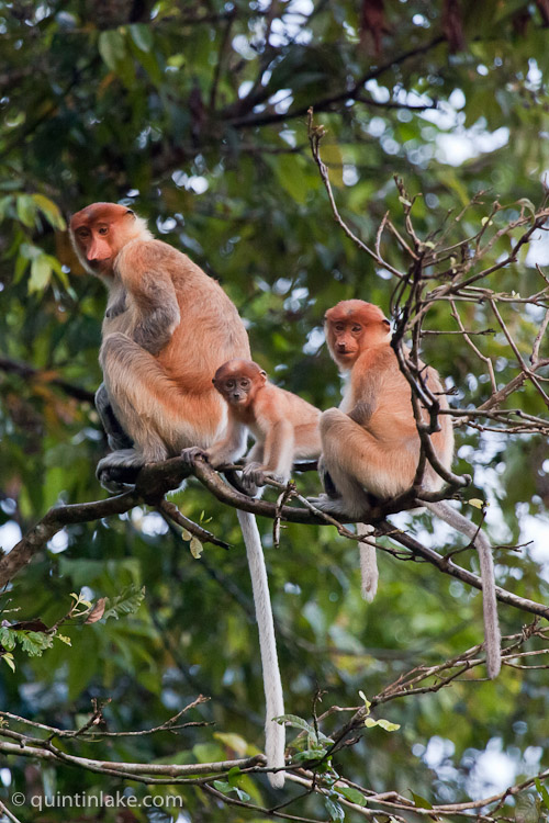 Family of Proboscis Monkeys (Nasalis larvatus) by Kinabatangan River, Sabah