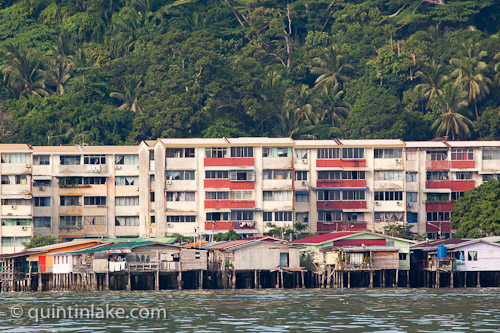 Water Village in Kampung Buli Sim Sim in front of apartment blocks, Sandakan, Sabah