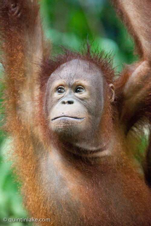 Portrait of Young Bornean Orangutan, Pongo pygmaeus morio, Orangutan