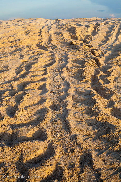 Turtle tracks head back to sea from the pit the mother turtle dug to lay her eggs at Pulau Selingaan (Island) Turtle Islands National Park, Sabah.