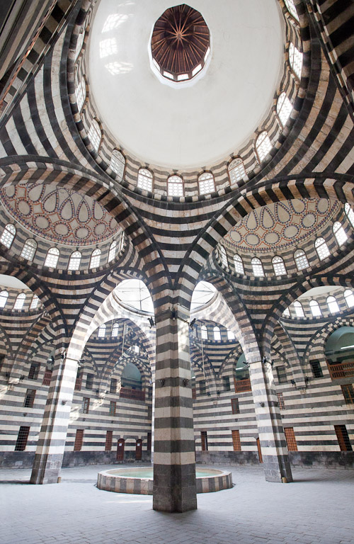 Three of the courtyard domes were destroyed in an earthquake seven years after the khan’s completion. The openings were covered with wooden planks until 1990 when the khan was restored and the domes rebuilt. No longer used for commerce at the beginning of the twentieth century, the khan was used for manufacture and storage until it was restored in 1990 winning the Aga Khan Award for Architecture.