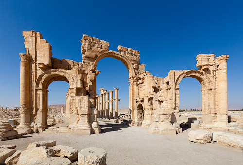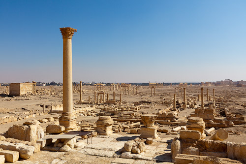 An oasis in the Syrian desert, north-east of Damascus, Palmyra contains the monumental ruins of a great city that was one of the most important cultural centres of the ancient world. From the 1st to the 2nd century, the art and architecture of Palmyra, standing at the crossroads of several civilizations, married Graeco-Roman techniques with local traditions and Persian influences.